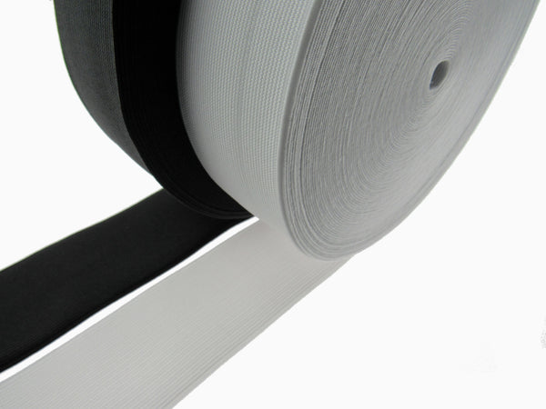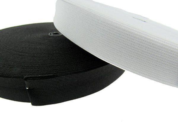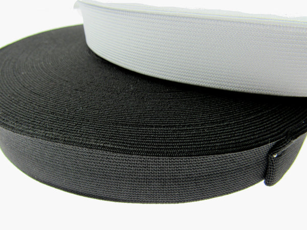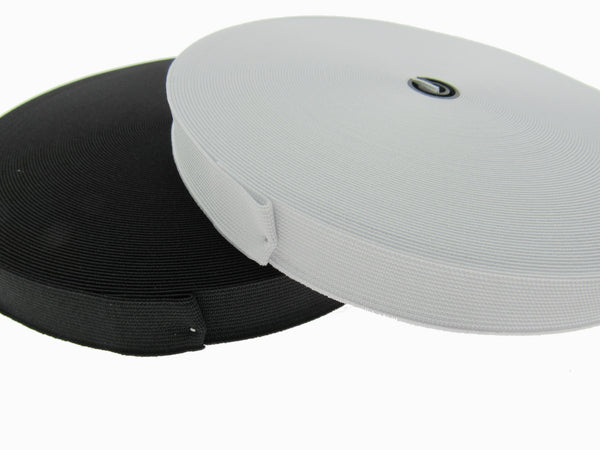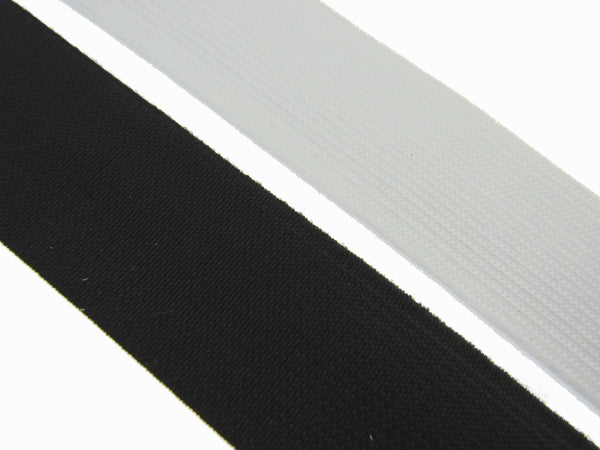 Flat Woven Stretch Elastic - Black or White - Choice of 6 Sizes & 3 Lengths