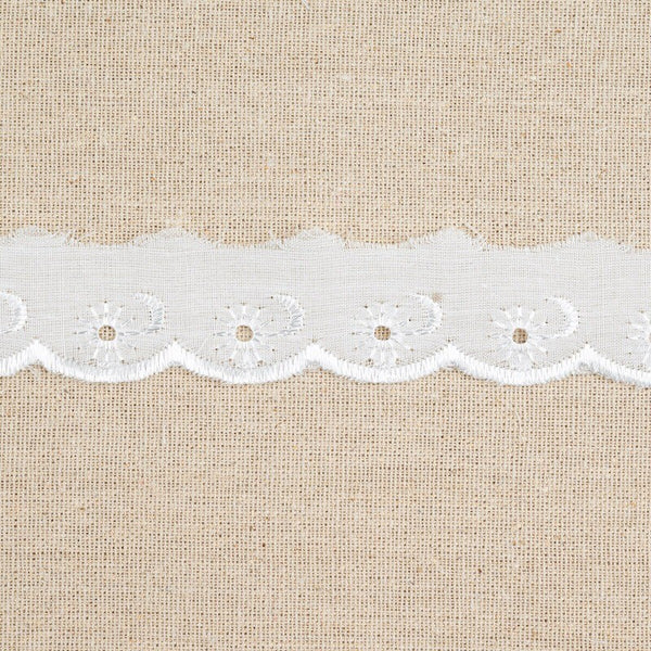 White Polycotton Broderie Anglaise Lace Trim 25mm Scalloped Edge 3m Flower