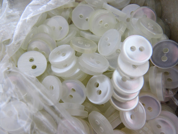 Round White Shirt Buttons with 2 Holes Basic Polyester 11.5mm